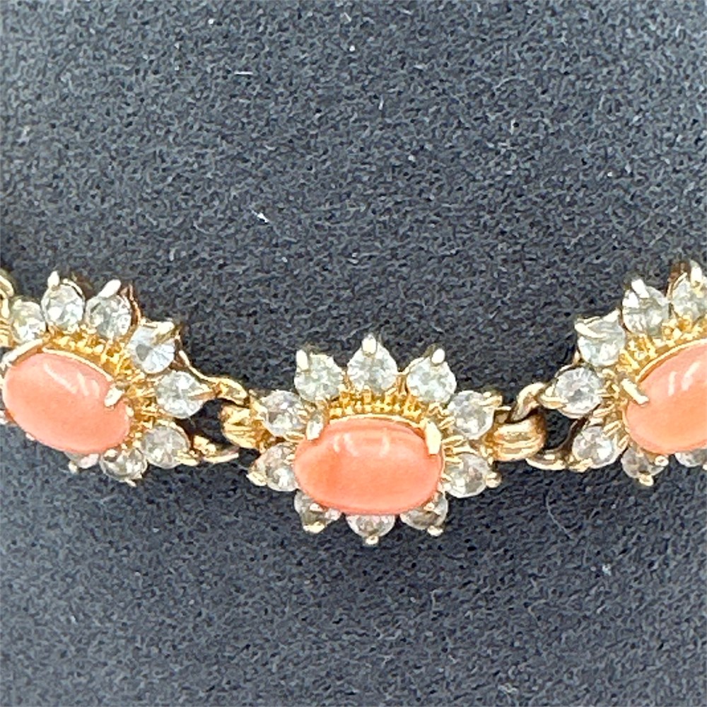 Vintage Gold-Tone Simulated Coral Cabochon & Rhinestone Station Bracelet View Watchlist >