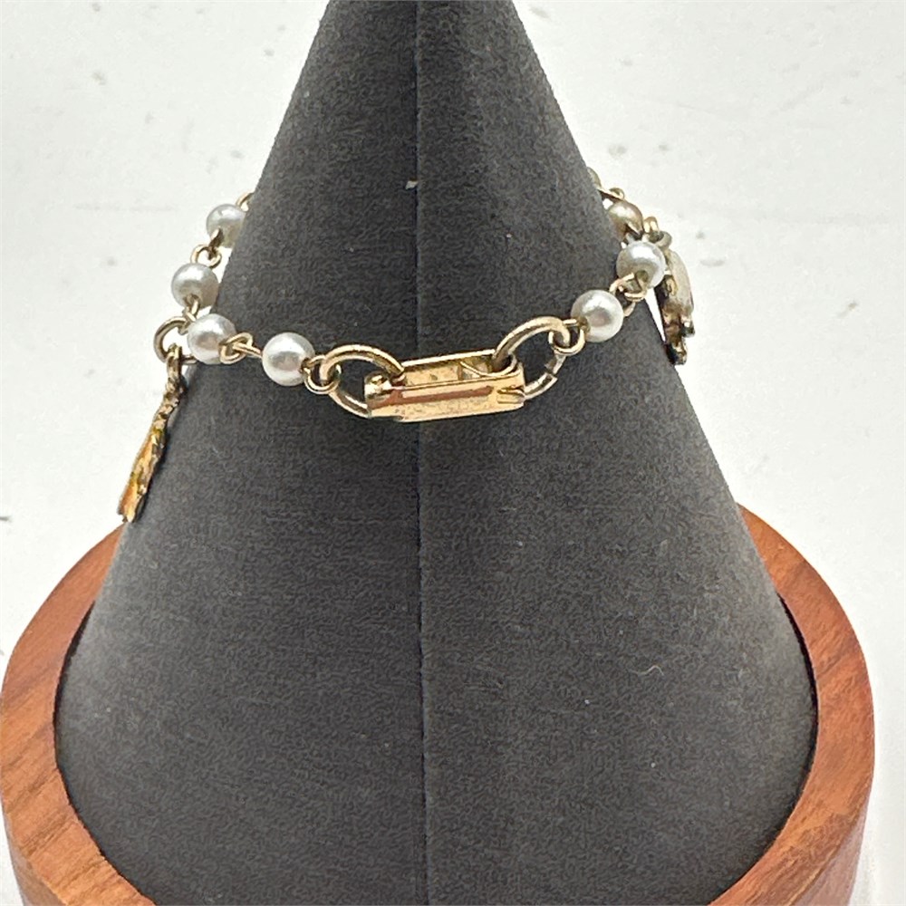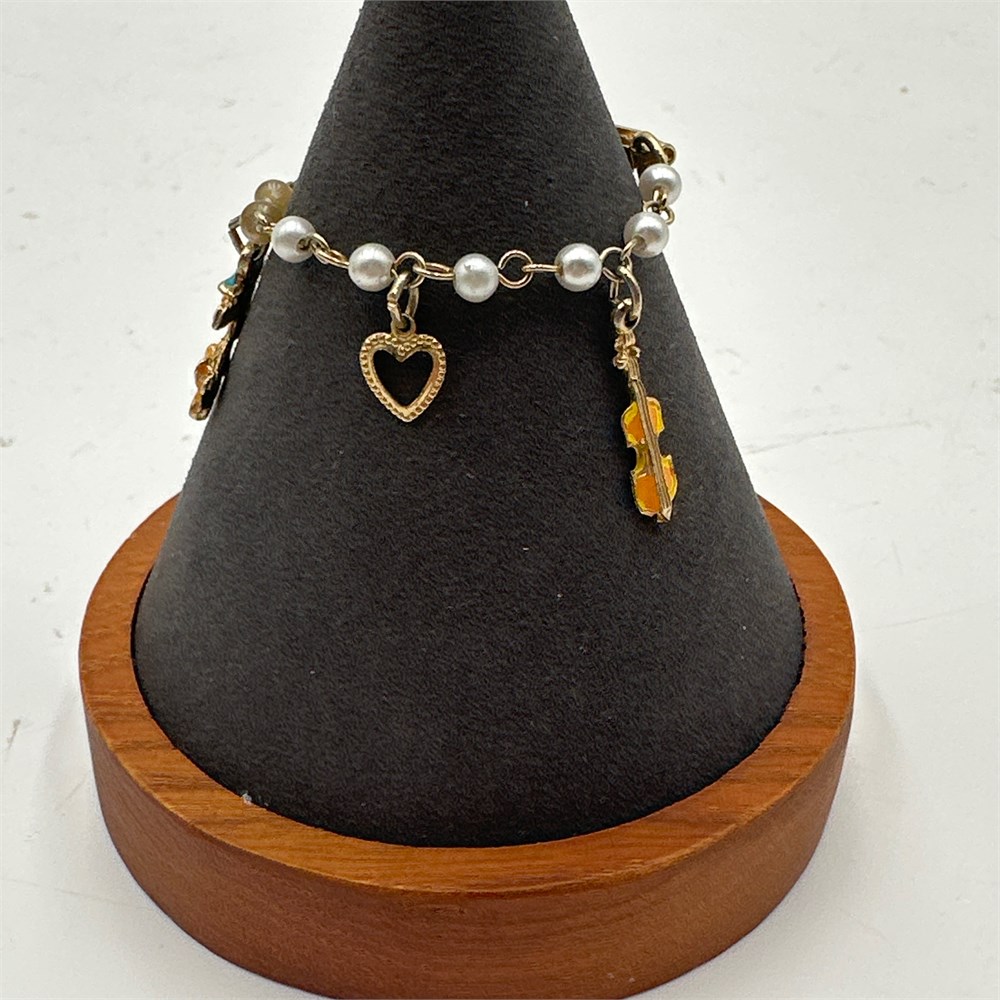 Gold-Tone Faux Pearl Charm Bracelet with Enamel Animal and Heart Charms View Watchlist >