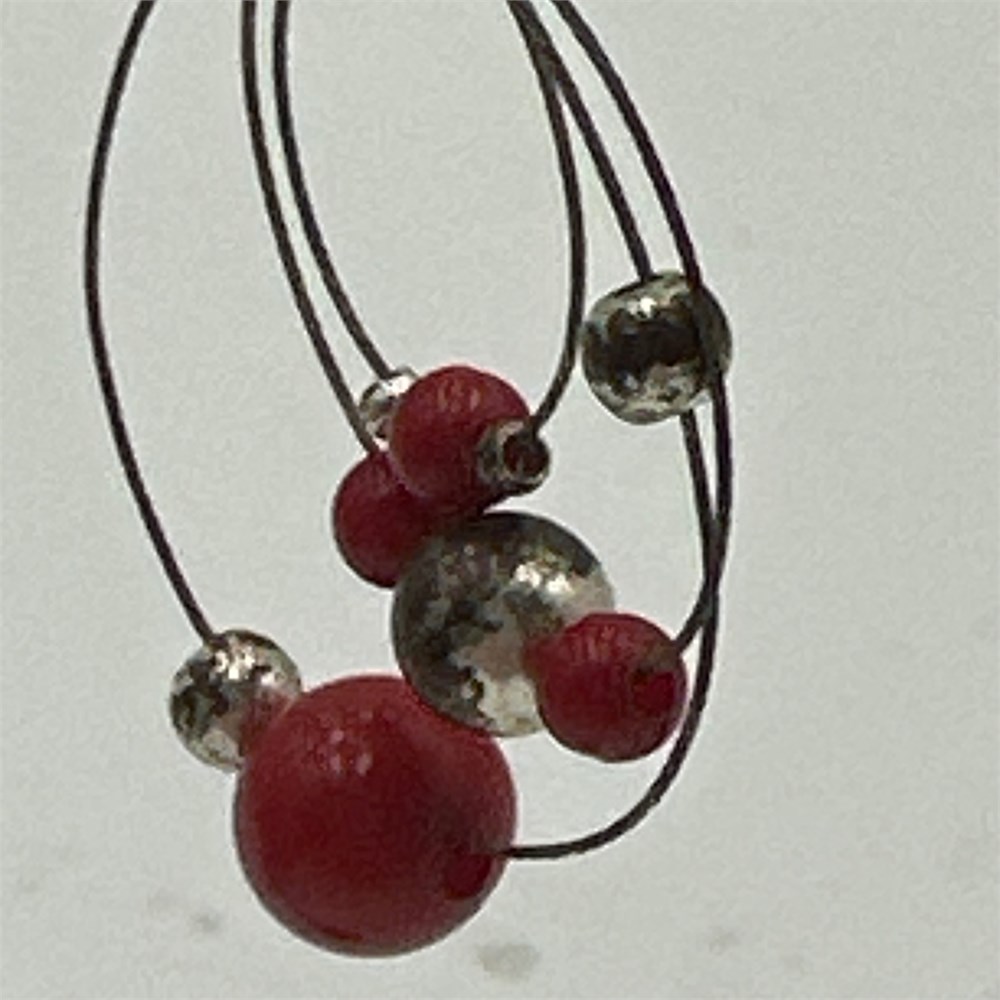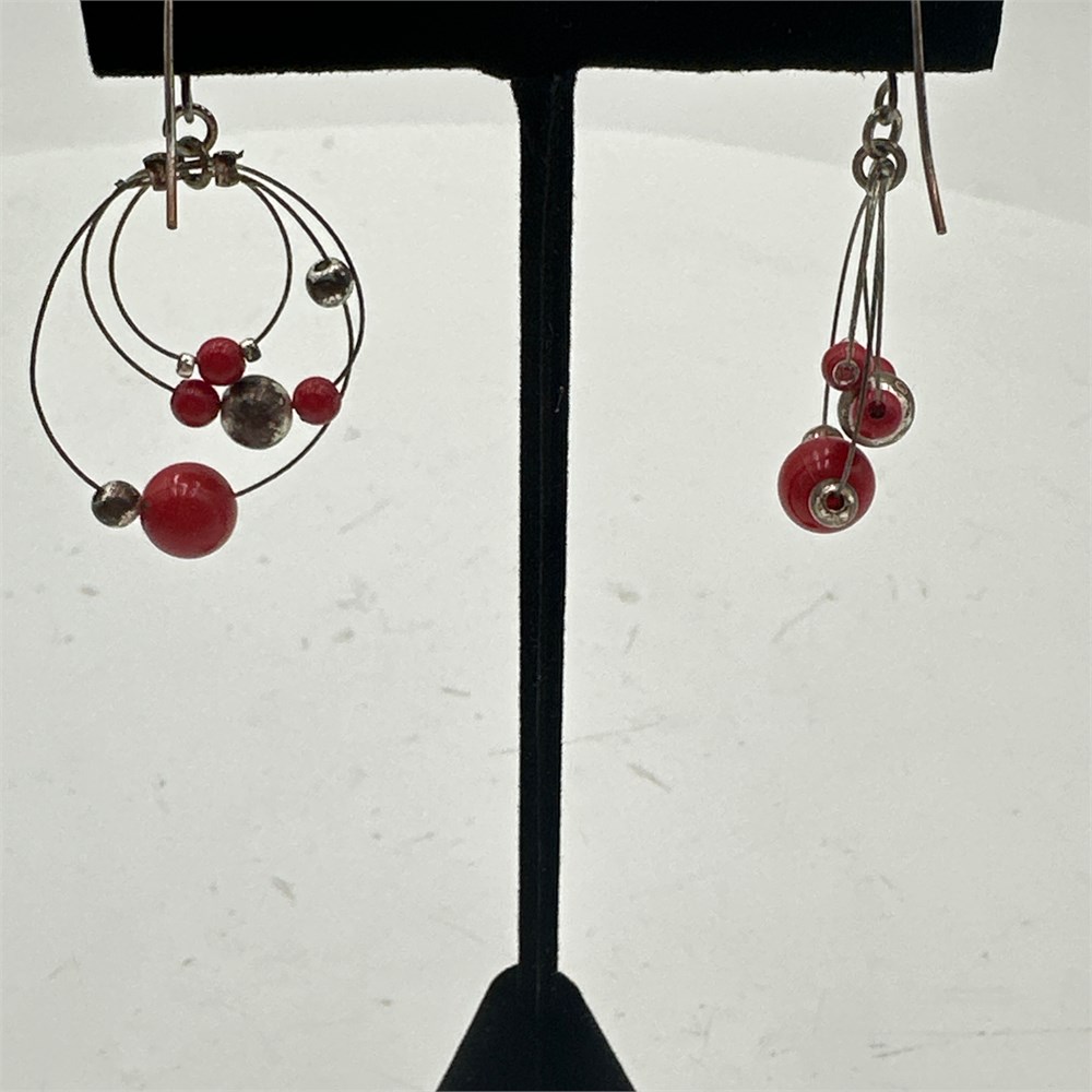 Sterling Silver Wire Dangle Earrings with Red Coral Beads and Silver Bead View Watchlist >