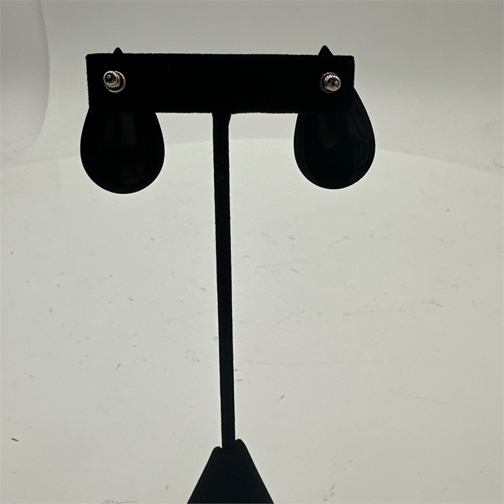 Black Enamel Clip-On Earrings with Wavy Line Design View Watchlist >