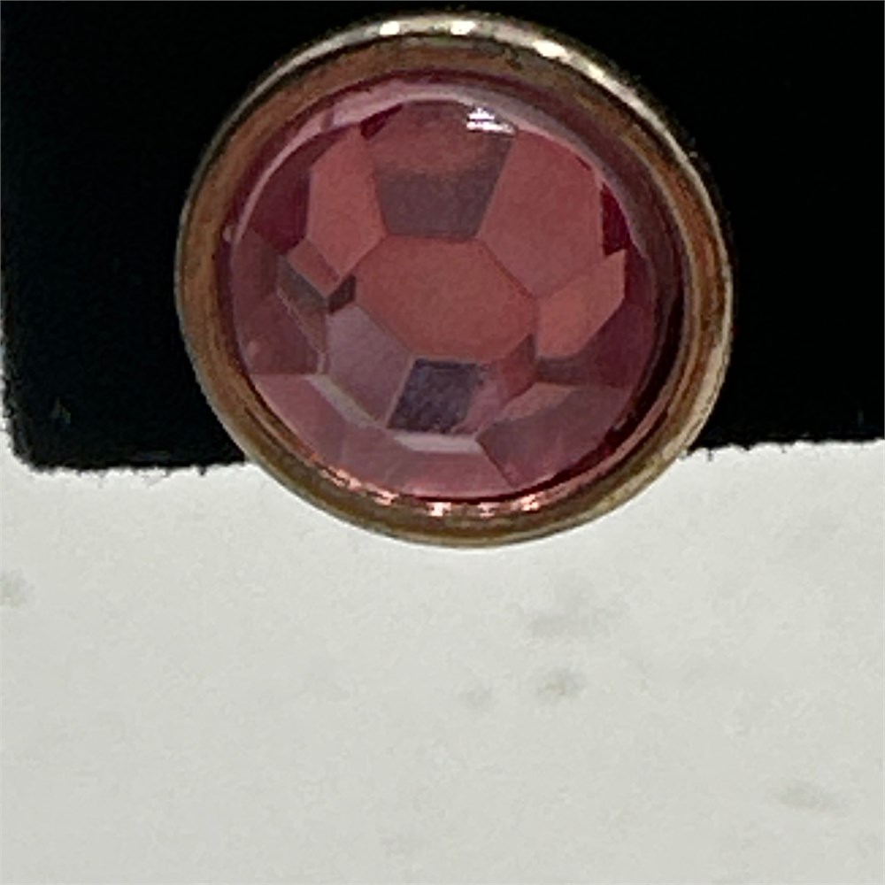 Pair of stud earrings featuring faceted pink crystal stones in bezel-set gold-tone metal settings with post-back closures. The stones appear to be rose-cut crystal or glass, consistent with mid-to-late 20th century costume jewelry construction.
