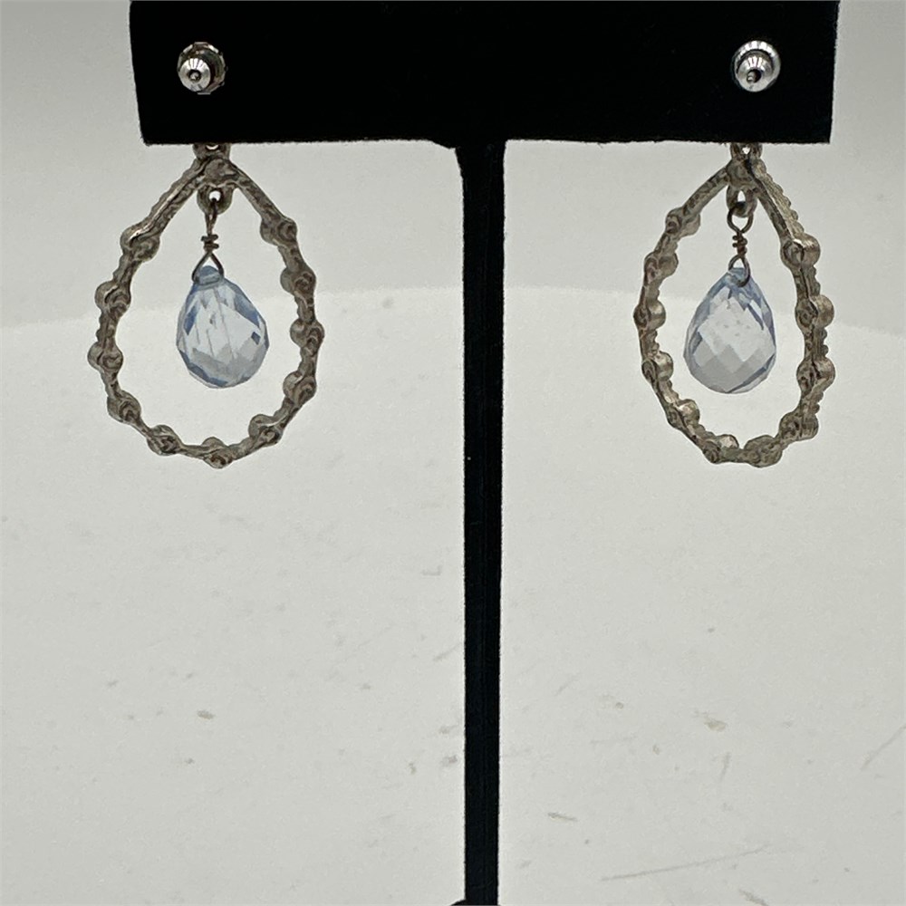 Contemporary Bohemian Twig-Textured Drop Earrings with Blue Rhinestones & View Watchlist >