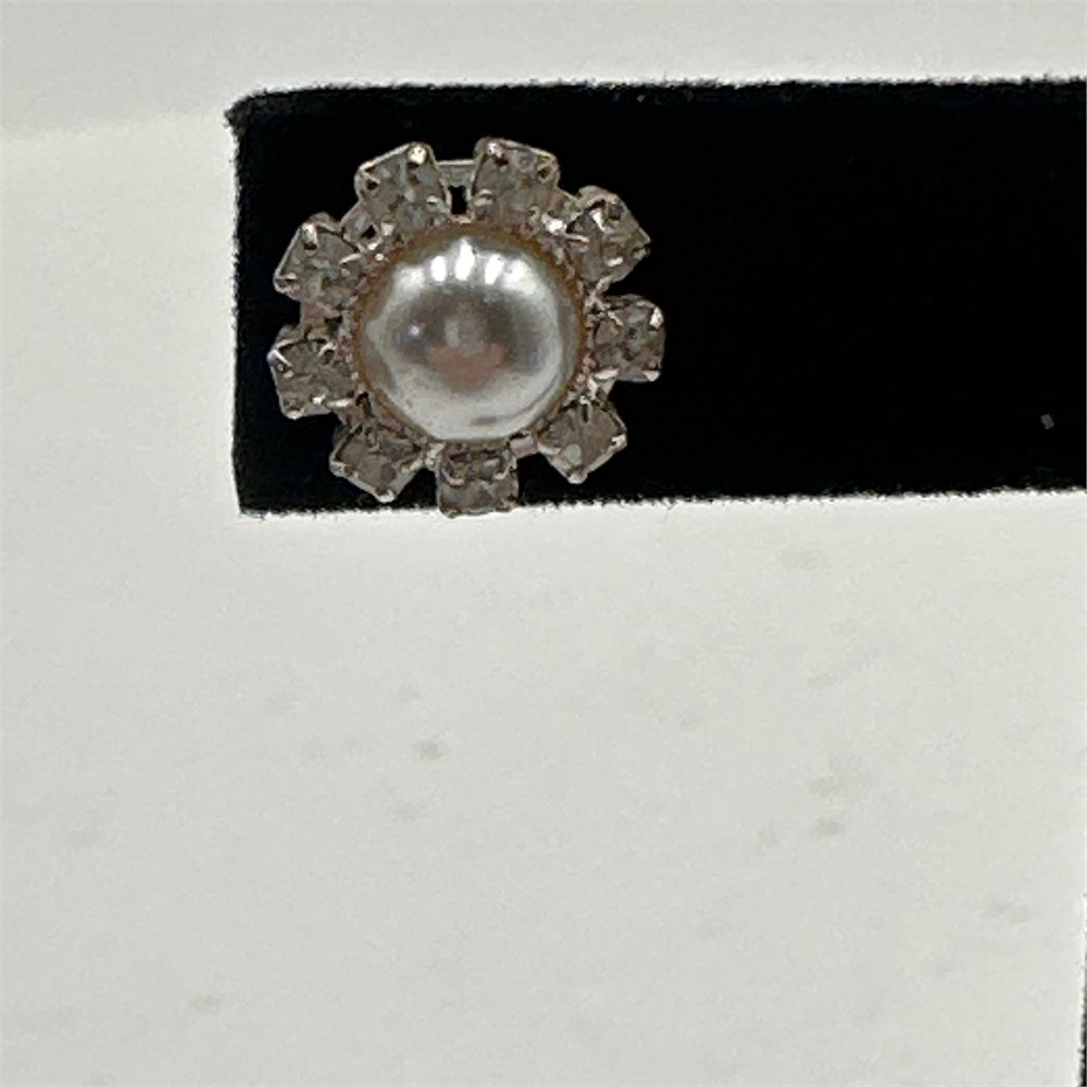 Vintage Faux Pearl & Rhinestone Halo Button Earrings View Watchlist >
