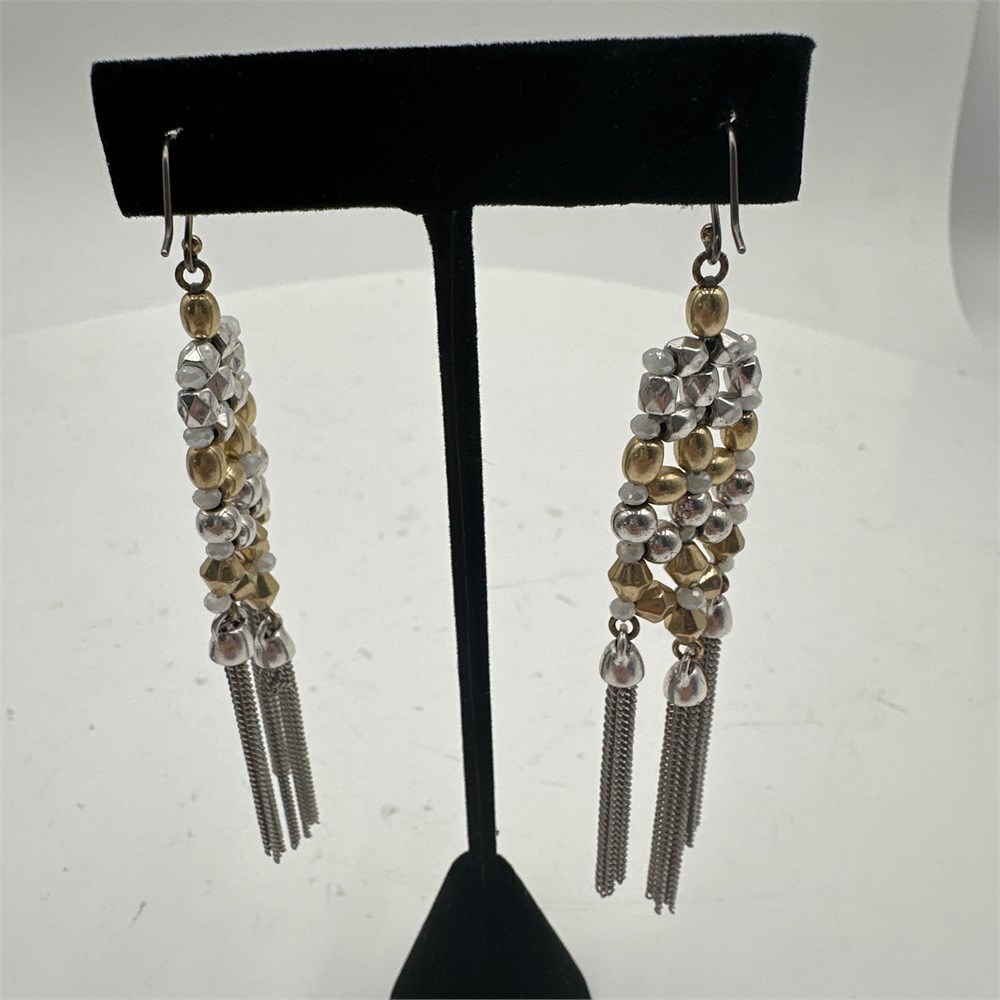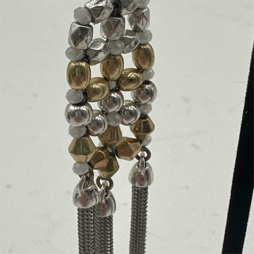Mixed-Metal Woven Bead & Chain Tassel Dangle Earrings - French Hook View Watchlist >