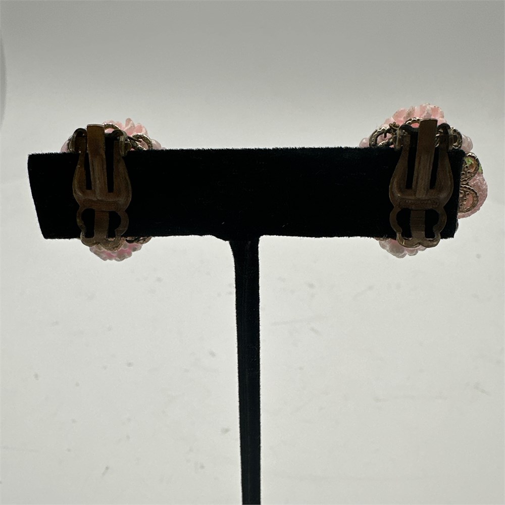 Vintage Mid-Century Pink Sugared Bead Floral Cluster Clip-On Earrings View Watchlist >